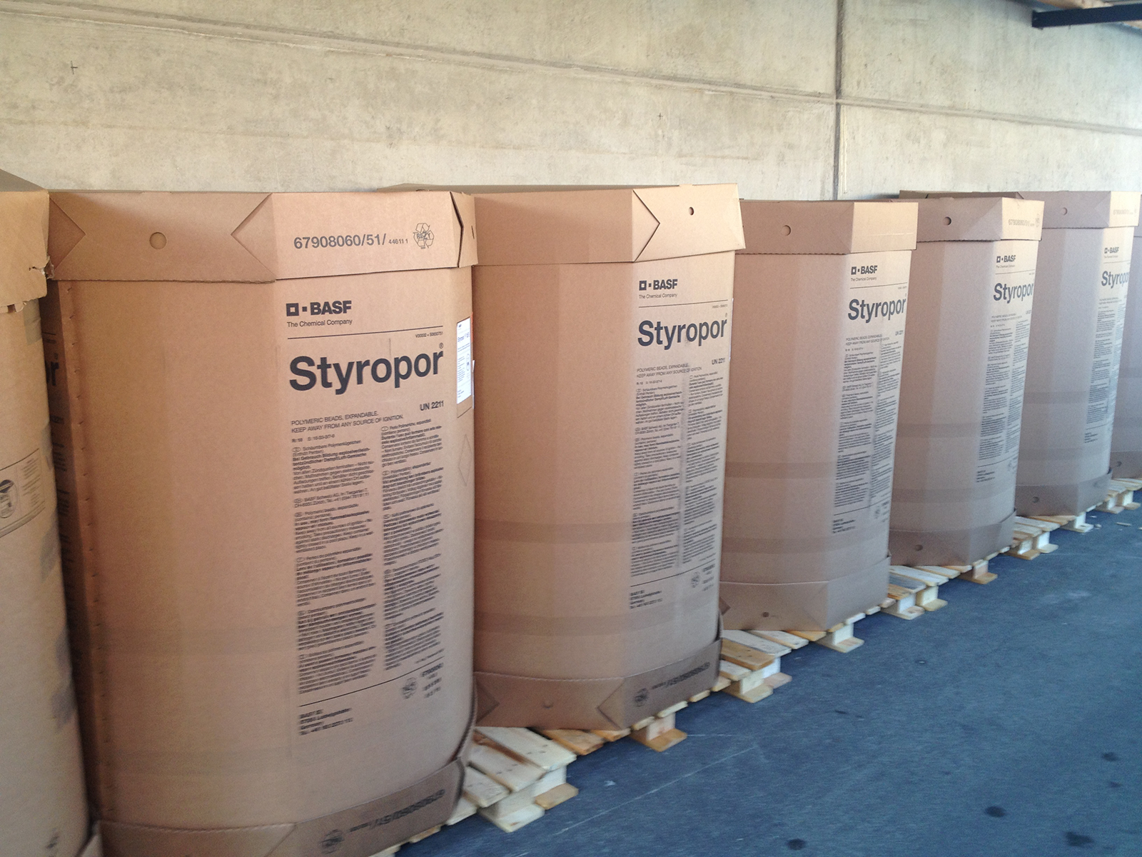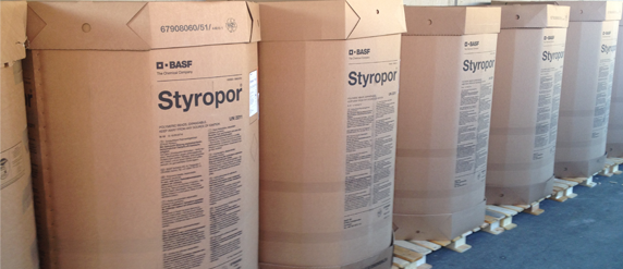 Osnovnu sirovinu za proizvodnju stiropora čine kuglice promjera 0,2 do 2,5 mm koje u sebi sadrže 5-7% plina pentana. Sirovina se isporučuje u kartonskim kontejnerima zapakirana u polietilenske vreće. Kontejneri se skladište u natkrivenom, suhom i prozračnom prostoru.